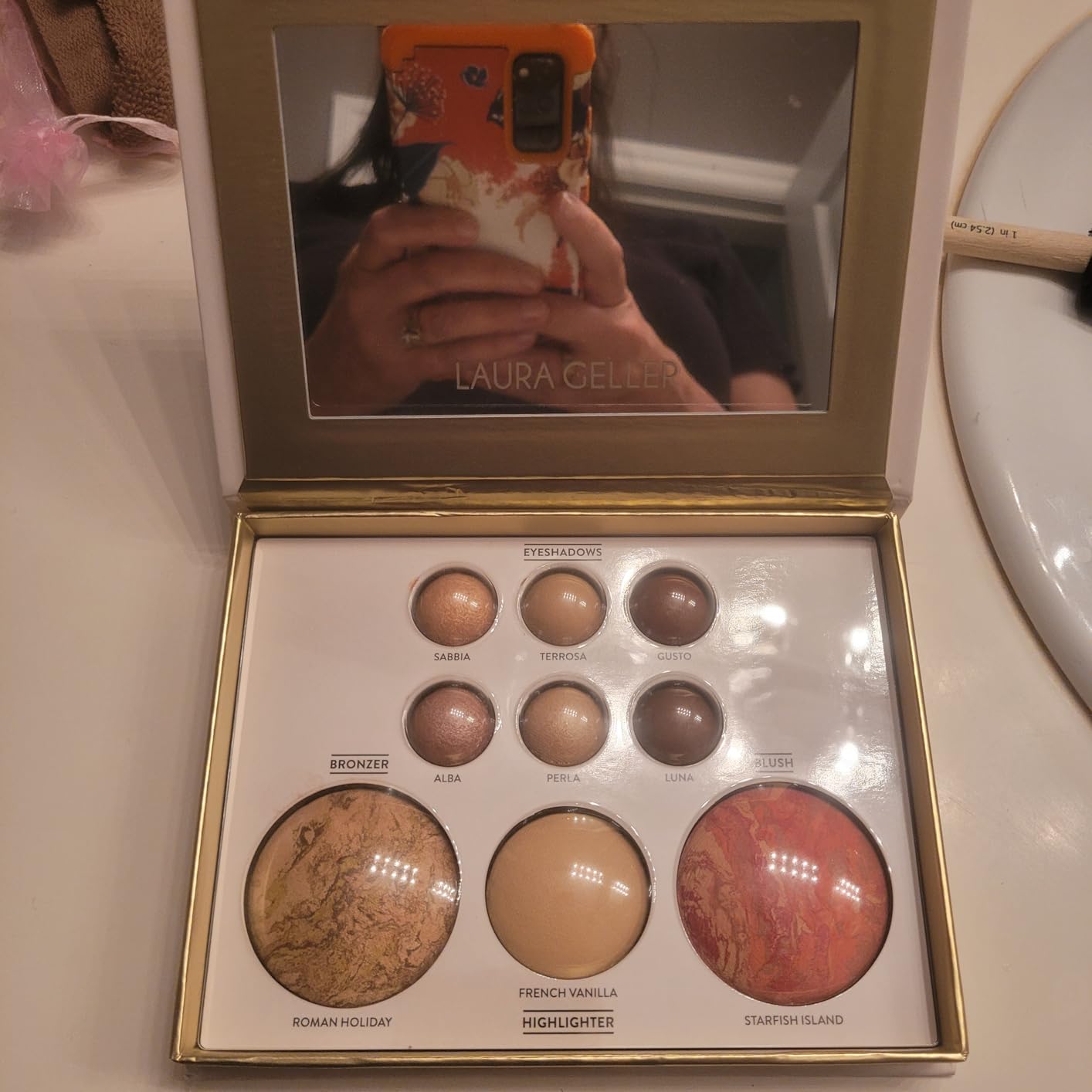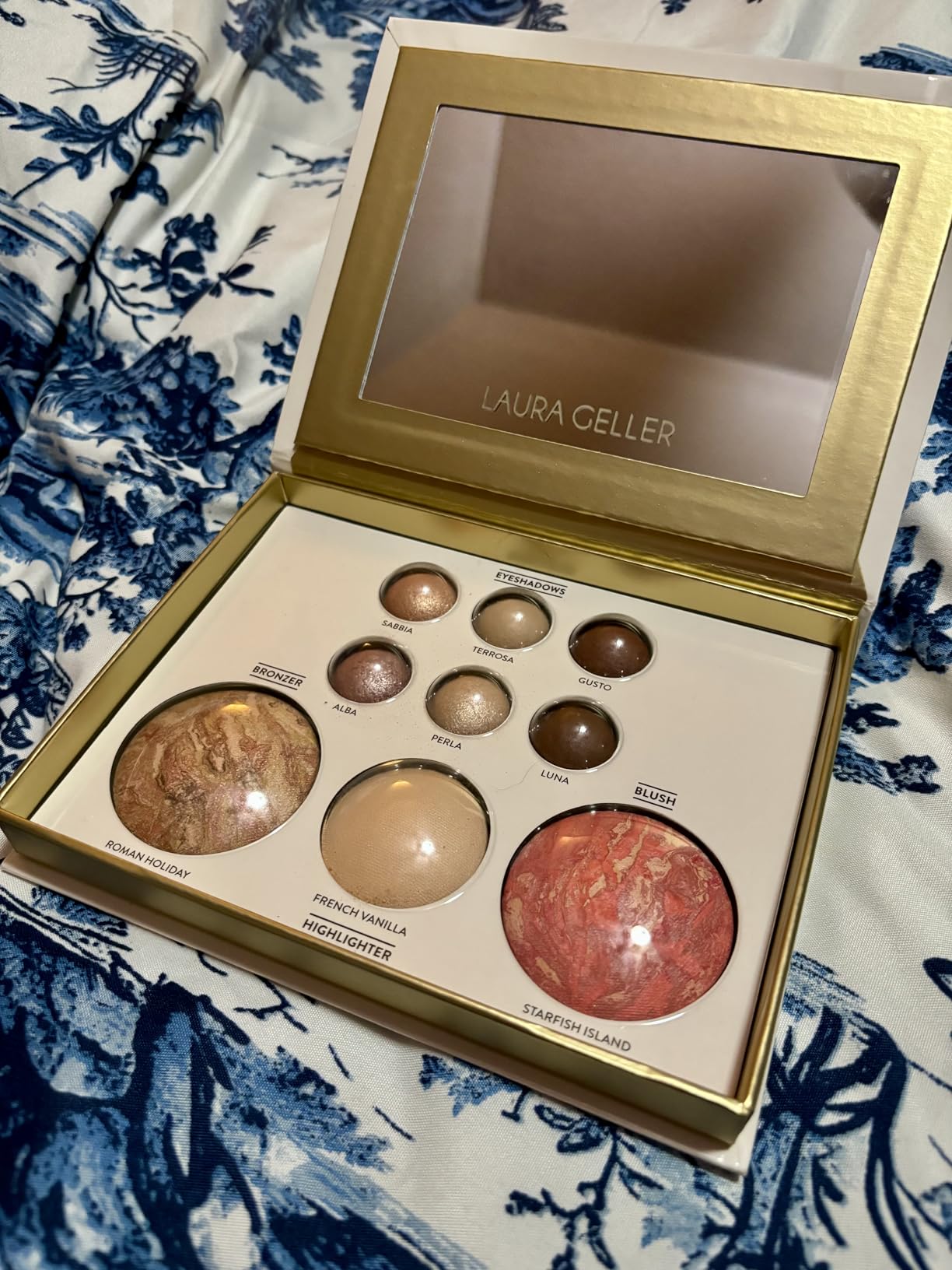 ✨This complete eye and face palette includes six baked eyeshadows in beautiful natural shades; a baked bronzer (shade: Roman Holiday); a baked natural luminous highlighter (shade: French Vanilla); and a baked blush highlighter (shade: Starfish Island).